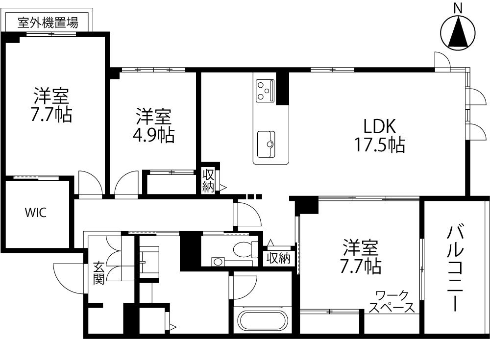 間取り 3LDK・専有面積 74.28㎡