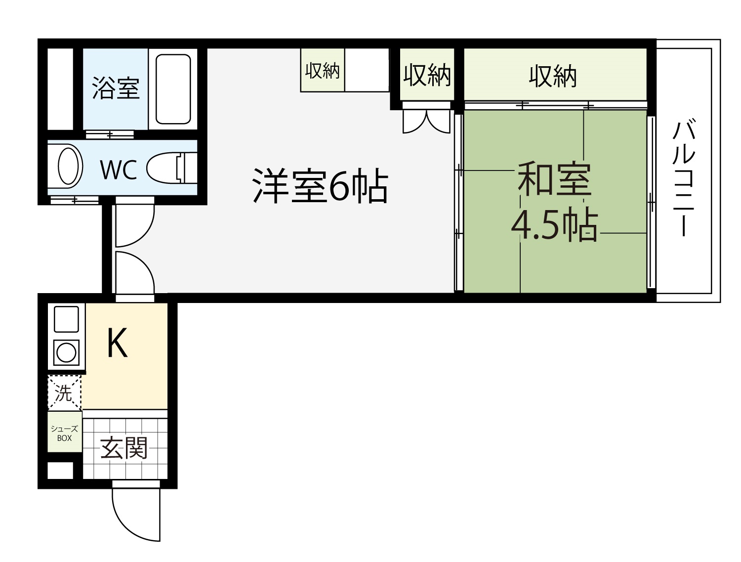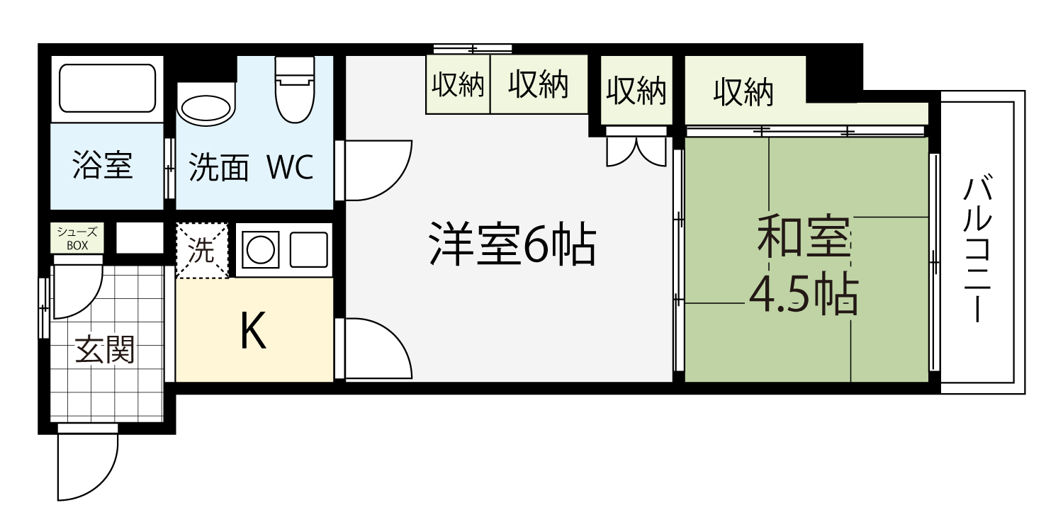 間取り 1K・専有面積 26.45㎡