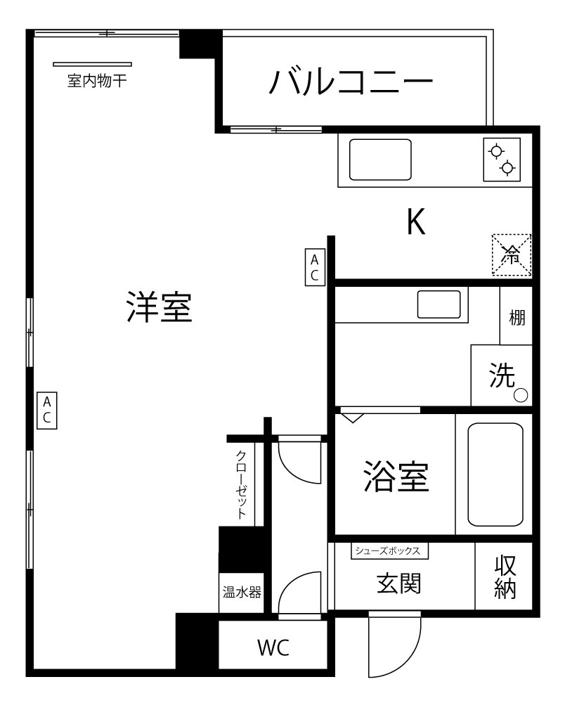 間取り 1R(ワンルーム)・専有面積 24.5㎡
