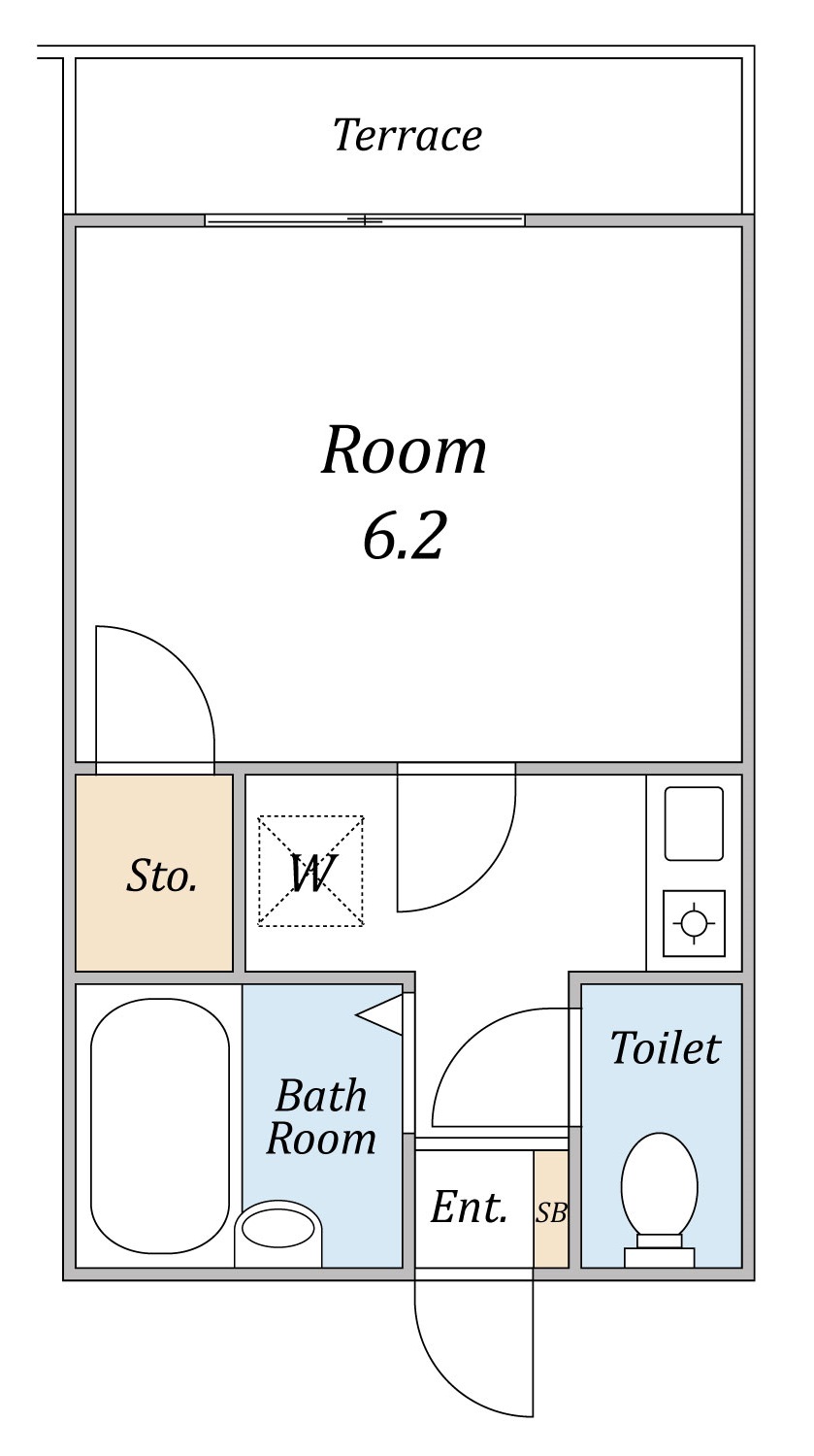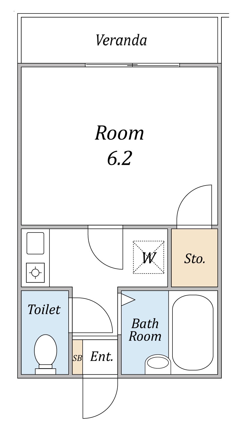 間取り 1K・専有面積 18.63㎡