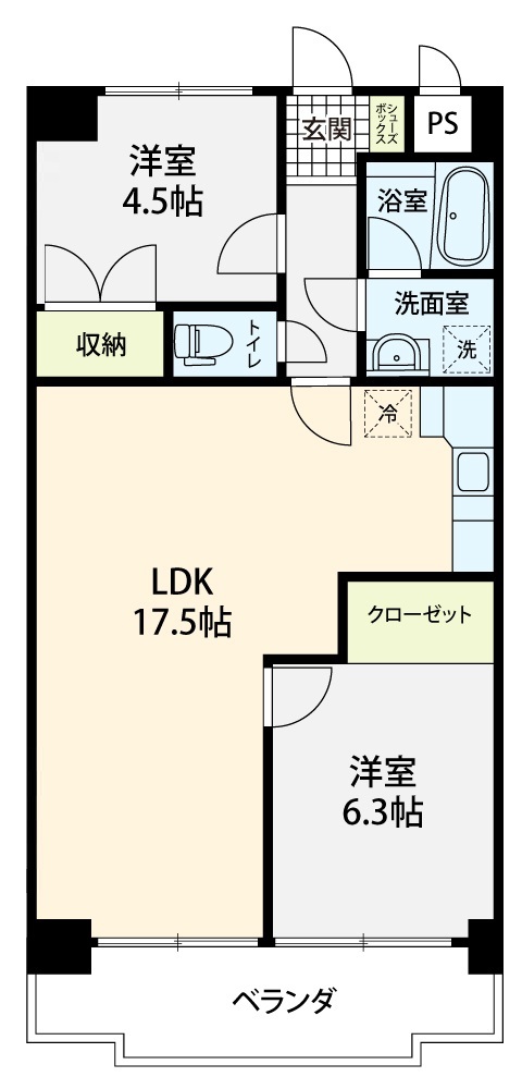 間取り 2LDK・専有面積 65.78㎡