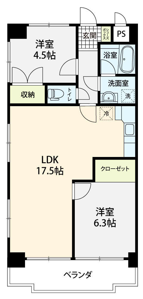 間取り 2DK・専有面積 49.5㎡