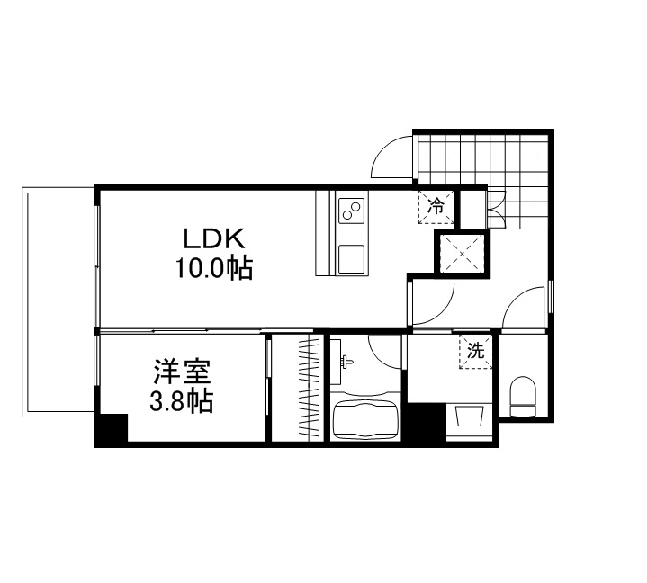 間取り 1K・専有面積 26.07㎡