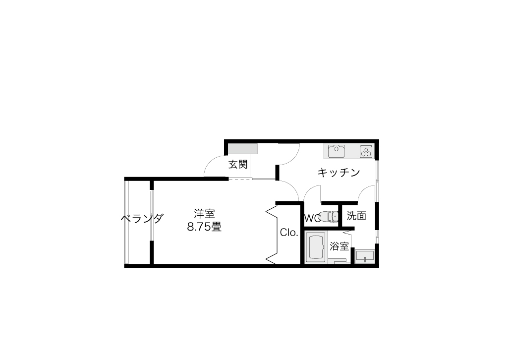間取り 1DK・専有面積 33.46㎡