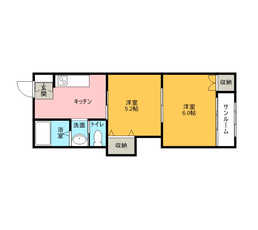 サンルーム付き2K!スーパーも近く、周辺環境良好です!