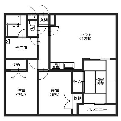 3LDK / 家賃 74,000円