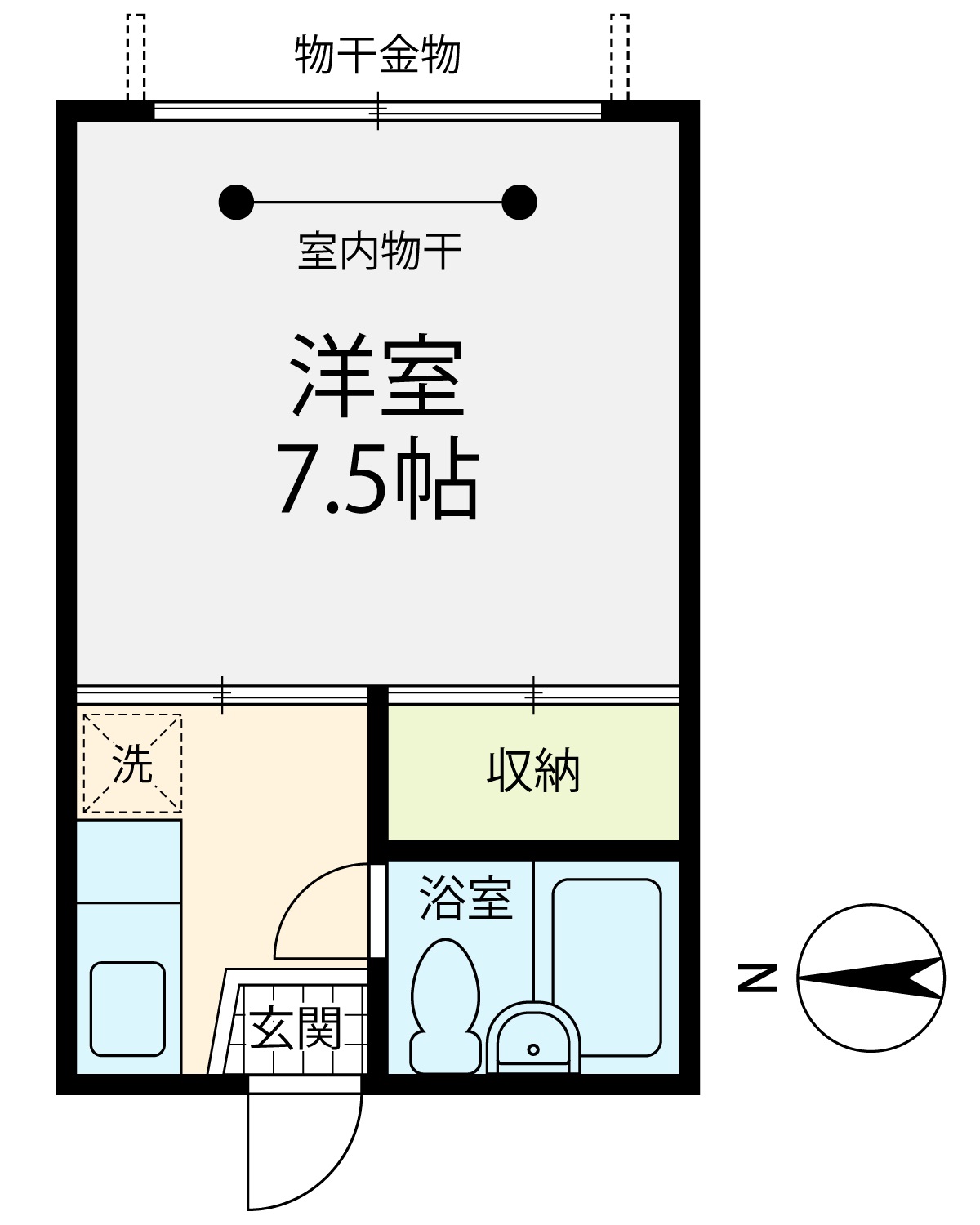 間取り 1K・専有面積 24.3㎡