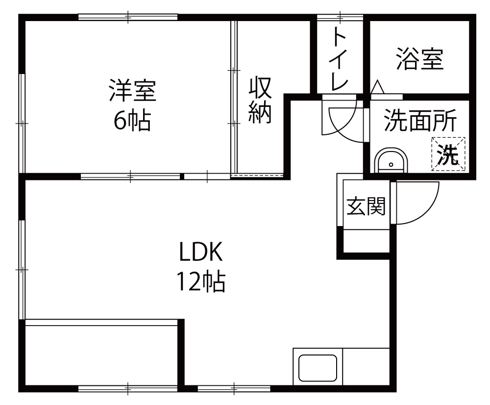 広々1LDKにリフォーム済み! サンルームがございますので、雨の日のお洗濯も安心! ※写真は同じ間取りの別部屋です
